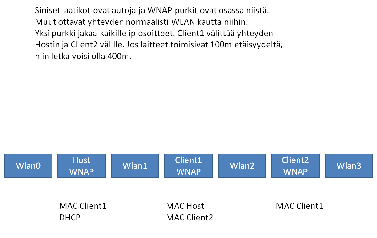 VerkkoNyt sain verkon toimimaan joka suuntaan. Verkossa on kolme konetta xp, vista ja win7. Xp vaatii sp3 ja p2p käyttöönoton. Tuolla pääsee kokeilemaan. Jos joillain laitteilla saa pitemmän kantomatkan niin hyvä, mutta aluksi riittää tuo. Vaikein osa tehty. Loppu onkin sitten vain kodaamista. Aikaa kuluu siihen ja sitä on liian vähän. Ensimmäiseksi toteutan kaikkein autojen näkymisen kartalla ja seuraavaksi karttojen ja kalibraatioden jako. Reitittimet on valmiiksi confattu, joten sellaisen liittäminen koneeseen rittää. Normaalille WLAN yhteydelle pitää valita haluttu reititin ja antaa salasana.