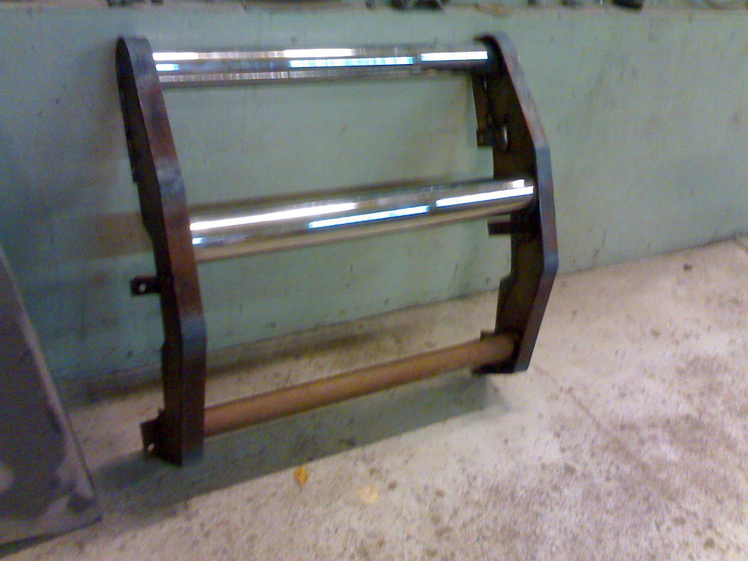Pahvista sabluuna, mittailua, viilailua, kiroilua ja loput rälläkällä. Päädyt on noin +3mm pellistä, päätyä "kiertää" 6mm latikkaa. Putket on 9mm ja 7mm seinämävahvuudella, alimmainen putki on jotain vesijohtoputkea. Ite rauta on kiinni alapäästä rungossa, puskurin kiinnike pultin alla ja tuolta puskurin aukosta menee rauta puskurin kiinnikkeeseen jossa myös pulttiliitos. Onpas tää hankala selittää. Voin pistää tarkempia kuvia kiinnitys kohdasta huomenissa, niistä tuo selkee paremmin.