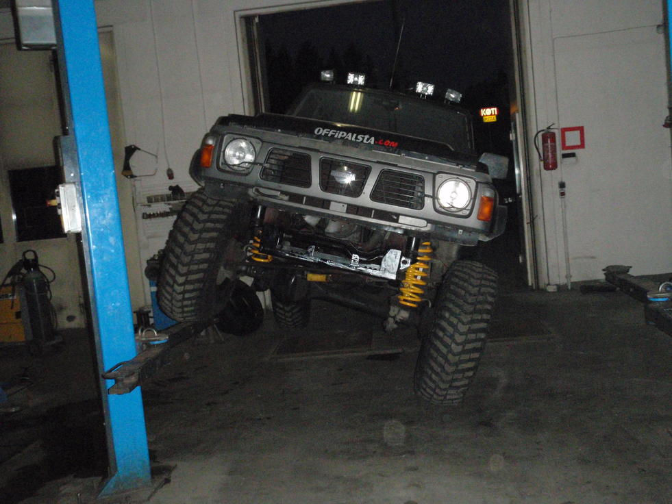 noniin nyt on päästy patrollin kanssa vauhtiin. alle laitettu 5" korottavat king springin jouset ja omen iskarit, vinssipetiäkin on rakennettu runvan 12000lbs vinssille, valoja katolle yms. vielä olis korotuksen myötä tekemistä, panhardien ja jarruletkujen jatkamista, ja yhtä laatikon jälkeistä poikki palkkia täytyy modailla ettei ota kardaani kiinni ulosjoustossa. puskuritkin on työn alla kun tässä kerkee. 37x13.5x15 mudzillatkin on ilmaantunut autoon. tässä vähän fotoja kys projektista