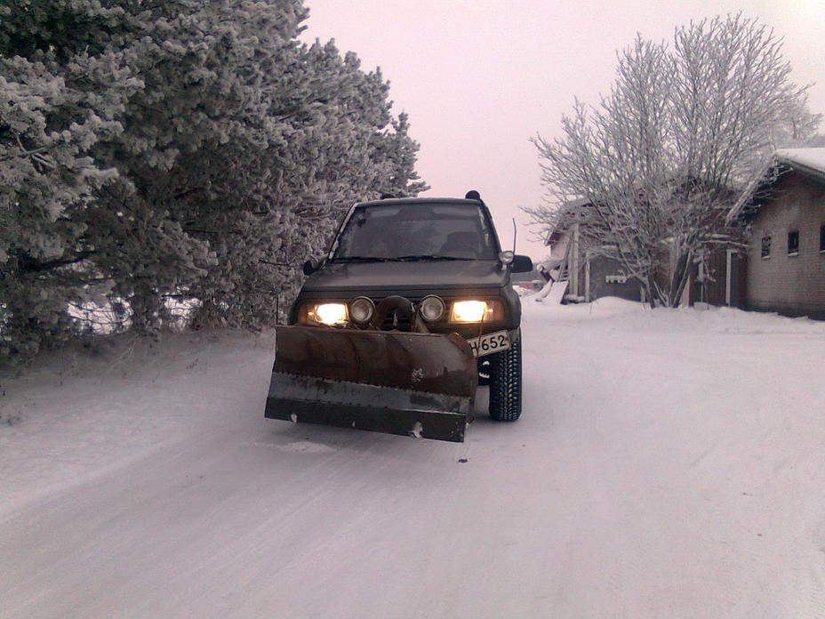 hyvin toi toimiii. Mitä nyt näkyvyys oli nollassa hetkellisesti mut pitää kumi laittaa auran yläreunaan vielä jos se auttais siihen asiaan.http://www.youtube.com/watch?v=z1yjN0kIXz0 |