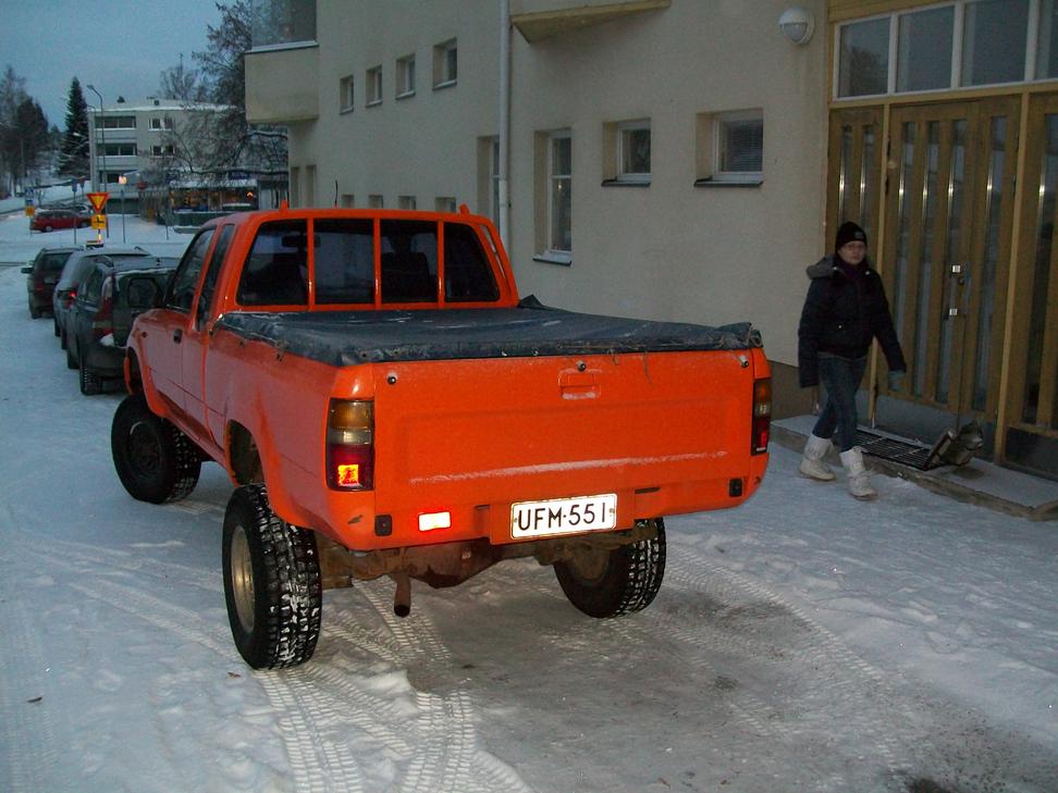toyota hilux ln110Myydään / Vaihdetaan hilux vm.90. 2.4d ja 4x4. ajettu 406tkm tekniikka ja koppa hyvä kuntoiset.kats 13.12.2010 huomautuksetta. korotettu koppaa rungolta 75mm. renkaat 285/75/16 bfg allterrain ja kitkarenkaat 235/75/15 viime keväänä ostettu. auto hyvässä kunnossa ja siisti sisältä. maalattu syksyllä räikeäksi oranssiksi. vaihdettu uusi perä murikka,syyläri. . hinta 4100€ vaihtoakin voi ehdottaa.p:0440831025 naksu_83@hotmail.com Myydään / Vaihdetaan Viimeksi muokannut jonisalmi : 21.02.2011 21:01 |