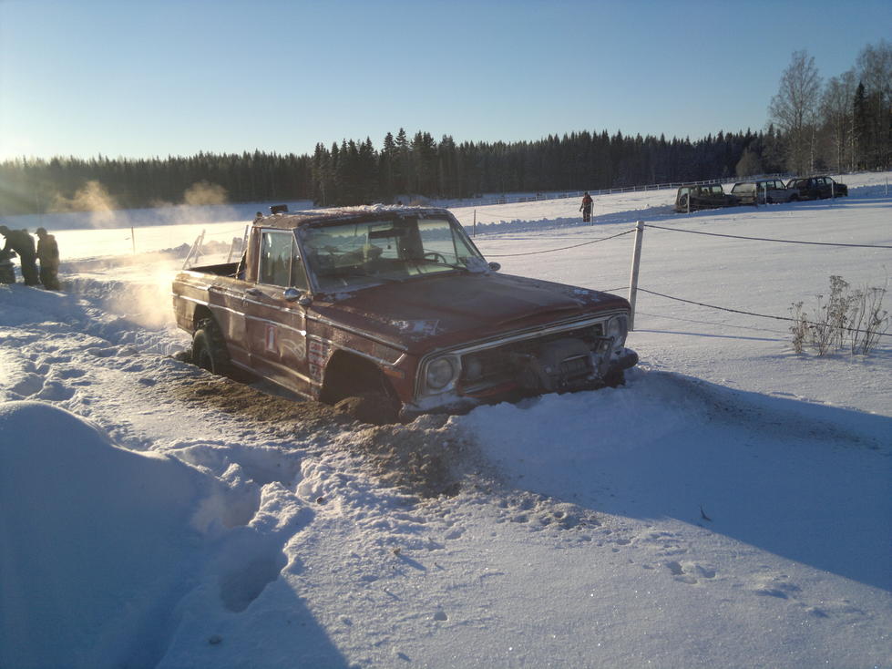 Safariinhan tulikin sitten käytettyä koko varattu aikaja vähän ylikin, eikä vähiten lumenpaljouden ja vetäjän lopun hinaamisen ja alun renkaan vaihto ruljanssin takia. Anteeksi. JEgoNEERin etuperän pauke johti lopulta etuvedon poistumiseen ja kohta myös taka veto häipyi ja vetäjästä tuli vedettävä .Rangen suosiollisella avustuksella ISO KIITOS siitä saatiin JEgoNEER tienlaitaan josta Jatilan naaapuri kävi traktorilla vetämässä pelin Jatilan pihalle talteen. KIITOS Hällekkin siitä. Eli tukimukset jatkuu JEgoNEERin voiman siirron osalta Paikalla kävi yksi suunistus kilpurikin pikkutunneille venyneen pajotuksen jälkee. Jarnon tiimi ajoi yhden lenkin ja poistuivat etuperän ylikuumenemisen takia, lumen heittelyn jälkeen etuperän päälle diaknoosi oli pinion laakeri sökö kun lumi iloisesti sihahtaen suli ko. kohdassa. Muiltakin kuului valituksia ylimääräisistä äänistä voiman siirroissa. Lunta oli aukeailla todella paljon ja maa ei ollut lumen alla jäässä joten keväällä paljastuu kyllä muutama kuoppa pellon tiestä. Kuveja laitetaan myöhemmin. Joita tuli kyllä taas otettua liian vähän. Olisin kiinostunut kuvista FJDC:n 20v juhlavuoden Jeepster lehden juttua varten Safarista ja mielelläni ottaisin vaikka jonkun läsnäolijan kirjoittaman jutunkin niin saataisiin vähän eri näkökulmaa lehteen. Vähän tekstiä kokemuksista Safarille riittää. Kokeilkaa. Saapi lähettää tänne: Jeepster@fjdc.org t. Ismo Ämmä