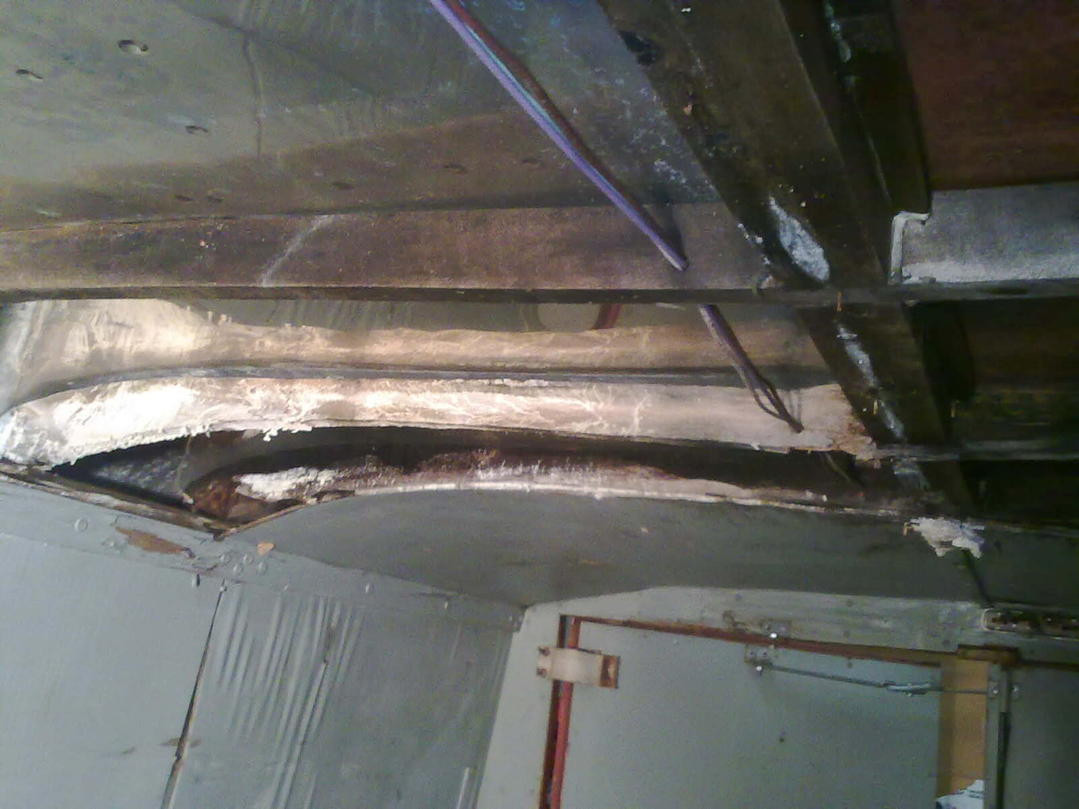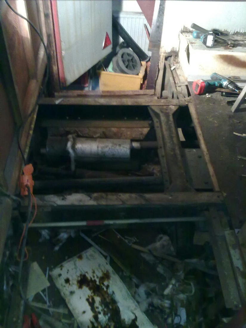 Sitten availtiin seiniä, ja myöhemmin kattoa. Kattoverhoilun alta paljastui tälläinen näkymä:
