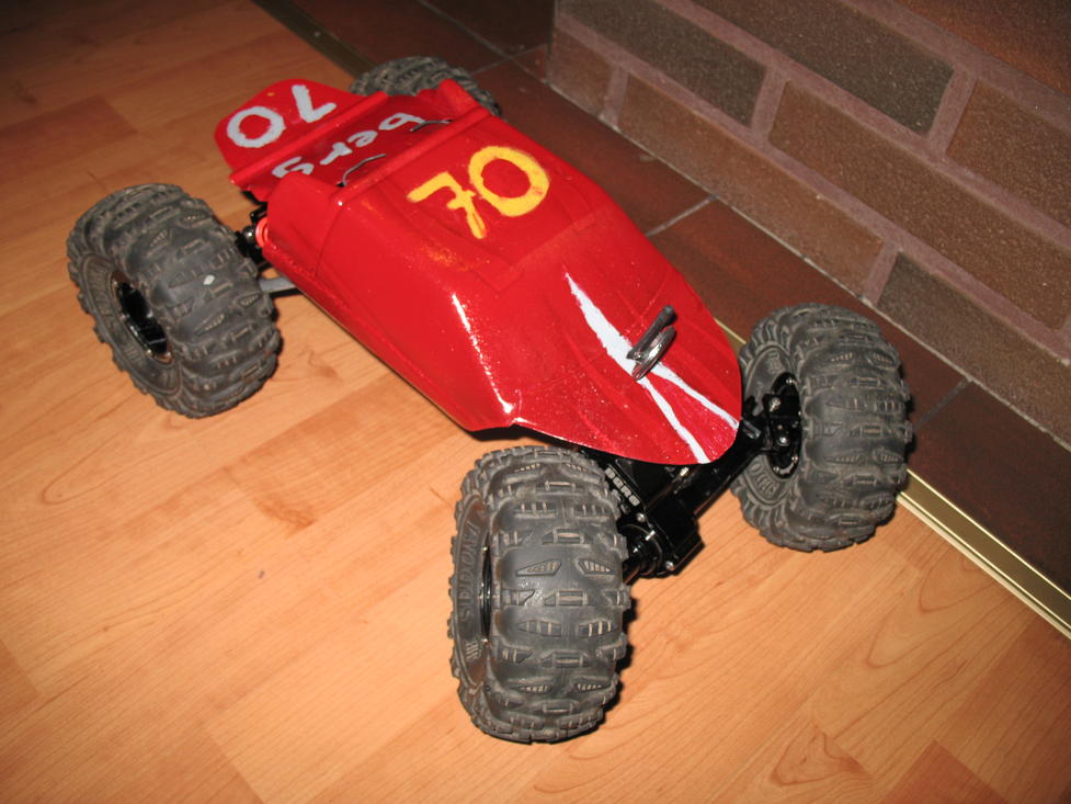 Pohjana on perus axial, kori 1/12 deuce, moottori ja nopari castle, normaalisti renkaina 2.8 venytetyt 2.2 pantterit tai sitten 2.2 ovroud-renkaat. Kuvissa alla jotkut huonot renkaat koska halusin vähemmän pitoa...