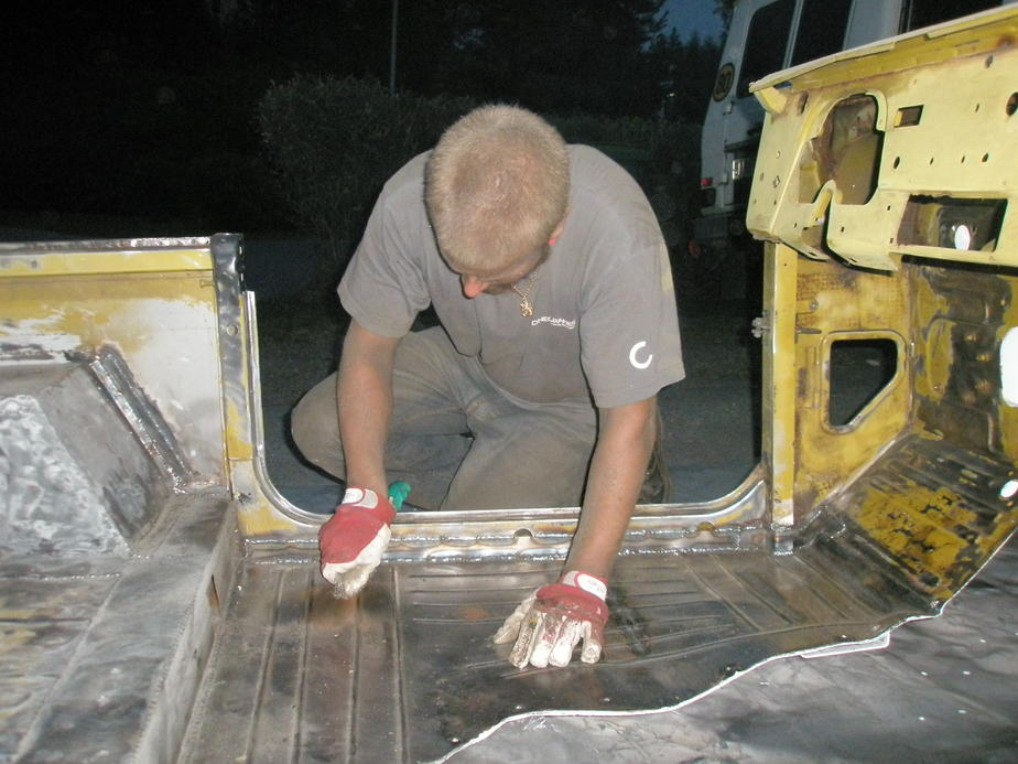 Takavalot laitetaan budjetilla, upotukset taakse ja mätänetin kolmen ja puolen euron takavalot kehiin. Lattiassa on vielä kovasti mutkaa kuskin penkin alla, mutta täytyy vielä koittaa naputella, jos vaikka sais pikkasen suoremmaksi. Helmoihin tuli palkit, tais olla 50x100 ja 3mm vahvuudella. Takalokasuojat hieman suuremmiks (toinen viel kesken) ja siihen tulee make-lj:n tekemät kuitulevikkeet. Oli muuten hyvin tehdyt. Lasikuituset levittävät etuloksut tuli tilattua Jopes hot rodilta, ei oo vielä tullu sovitettua, mutta päällisin puolin näyttää hyvältä. Muutaman hitsipaikan jälkeen pitäis maalailla, mutta sitä ennen ratkaista, että viekö jonnekin hiekkapuhallettavaksi vai mitä tekee. Jos joku tietää edullista hiekkapuhallusta Hämeenlinnan läheltä, niin saa laittaa vinkkiä! Ja kokemuksia kanssa siitä, että onko Bj:n pellit vedellyt puhalluksessa? |