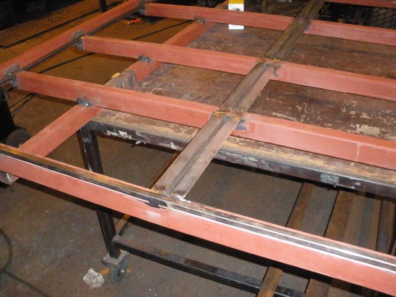 Netistä löysin rungon mittapiirustuksen ja etukäteen oli hiukan mallailtu ideaa. Ainoastaan kopin ja lavan etukiinnikkeiden etäisyys oli hiukan epäselvä. Toinen lavan runkoputkista mallattavana ja hiukan räkäsaumaa ihailtavaksi.
