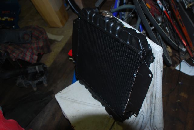 Syylari kävi jäähdytinkorjaamolla ja siihen tehtiin helvetin kallis remontti(kennon vaihto). Onneksi tuli sovitettua ennen lopullista kasausta. Perkele! päädyt juotettu väärin päin paikoilleen. Usiks meni. No takaiskuihin on totuttu. Eilen loppui kaasu kesken "rähinän". Toinen tämän päivän huomio oli, että vasen takajousi on poikki. Ollut ties kuinka kauan. No hyvin se on topparin varassa kulkenut! Koolmas takaisku oli läpeensä mädät lokasuojat. Make kerkesi jo leikellä ja valmistella niitä korjausta/avarrusta varten, mutta ei oikein löytynyt enää kovaa paikkaa mistään. Onneksi varastosta löytyi uudet 410:n tarvikelokasuojat. Niistä ruvettiin sitten muokkaamaan avarampia. Tarvikepelleissä mitat tuntuvat olevan vähän sinne päin. |