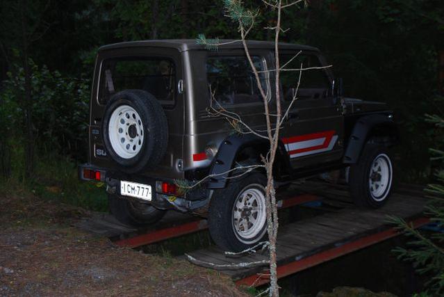Alla on nykyään Mud terrain MK2 31" Kumit. Ennen isompia pyöriä Jälkeen. Kumpikohan sopii paremmin Susukiin... Autokin on nykyään korkeampi kuin kuski taas nousi auton säkä noin kymmenellä sentillä. Parkkihallejakin pitänee alkaa varoa ettei kattoon tule naarmuja . Kaiken lisäksi nyt saa istua ylöspäin oikein urakalla ku jalkakaan ei meinaa taipua.