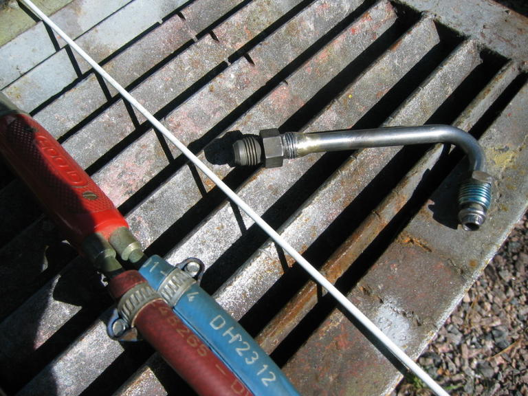 Kävin katsastamassa H1:n ja tarkkasilmäinen katsastusmies huomasi, että tehostimen pumppu vuotaa öljyä (koko auton alusta oli öljystä märkä ) Oli ratkennut matkalla katsastukseen koska himassa parkkipaikalta ei löytynyt mitään lammikkoa. Eilen tutkin mikä vuotaa. Viaksi paljastui tehostimen lähtöputkeen tehty messinkijuotos. Aikanaan kun laitoin hydraulisen vinssin piti tehdä sovitin GM putkista standsrdi JIC liittimille.Vika näytti olevan sama kuin vanhoissa vesijohtoputkissa. Messinkiin oli ilmestynyt hius-syöpymä. Hyvin sieltä öljyä tulee kun systeemissä vapaa paine on 10-12 baaria ja maksimit 100 baaria. Korjauksen tein hopeajuotteella. Hyvää tavaraa ja helppo käsitellä mutta pirun kallista. Luokkaa 11 egee puikko. Vähän paska paikka irroittaa ja kiinnittää putki kun pumppuun ei ylety oikein ylä- eikä alakautta.