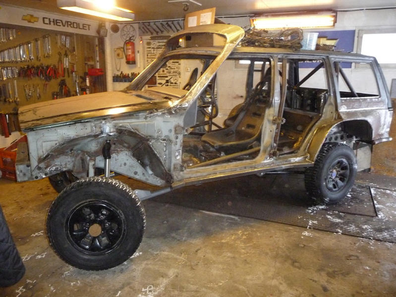 Nyt on kaaria vähän nostettu ja rakennettu hieman lisääkin. Hirveästi ei ole Jeeppi edistynyt, kun aika on tahtonut mennä matalampien autojen ja 1954 Majorin korjaamisessa. Takavaloille ilmestynyt suojat ja etuakselia pikkaisen aloiteltu.