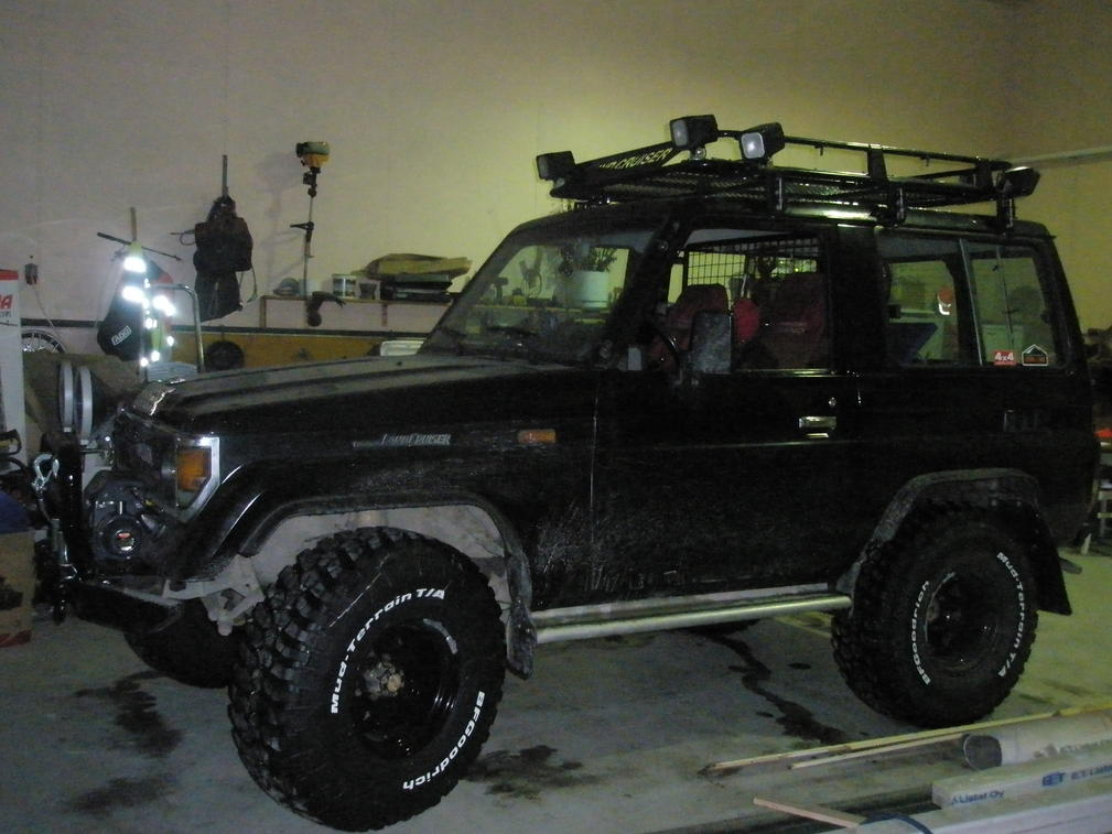 Ensin 35x12.5-15" renkaat alle (bfg km2.Tuntuu renkaat todella hyvältä) ja sit puskurit eteen ja taakse sekä vinssi eteen,dopisonin alusta,5000W inventteri,safari teline (mallia land cruiser) ym pientä.
