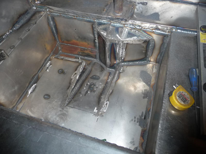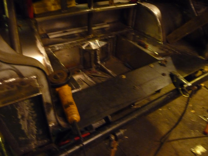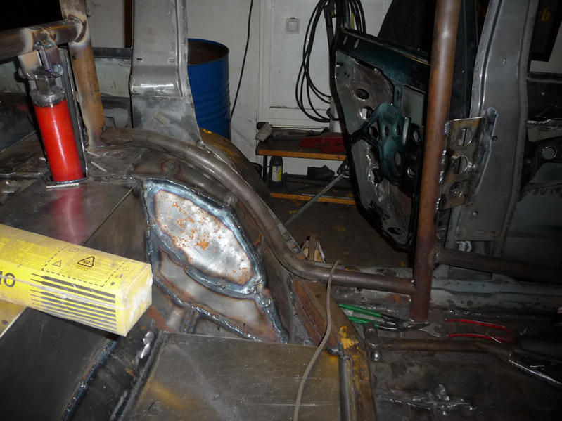 Pohjassa oleva reikä hieman pienentynyt, takapenkkien kiinnitysalusta paikallaan. Tukivarsien kiinnitykset tehty valmiiksi, tuli 4mm seinämällä oleva palkki poikittain koko auton mitalle ja kiinnitys helmapalkkeihin sekä turvakaariin. Tankin upotustakin aloiteltu. Polttoainepumppu auton sisälle vai ulkopuolelle? EVO 1 takapuskuria joutuu hieman muokkaamaan sivuilta, mutta laitoin sen paikalleen jäykistämään koria nyt kun tuon kertaalleen tehdyn vinssin paikan joutuu poistamaan ja tekemään uusiksi toiseen paikkaan. Syy edellä mainittuun on tankin valinta safarimalliseksi eli suuremmaksi. Jos mittailuni ei ole menneet ihan mettään niin hankintalistalle menee 18 tuumaiset ilmatikut, jolloin sisäänjoustoa 16cm ja ulos vajaa 30cm.