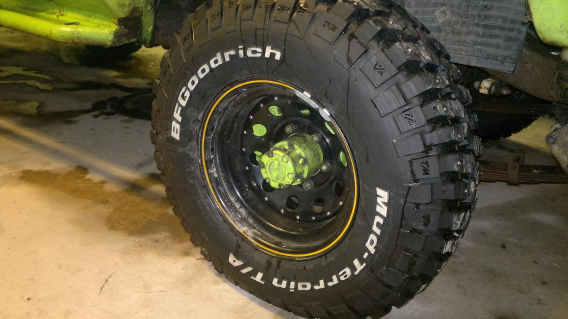 olisko sulla kuvia gummeista? mulla olis nastoitetut hyvät 31" mutikat hj:n jaolla peltivanteilla. tai sitten 33" kumhot samanmoisilla vanteilla. saahan kumit pois vanteilta, jos kiinnostaa vaihdella. kumhoissa pintaa n.10mm ylös päin, bfg:stä kuva...