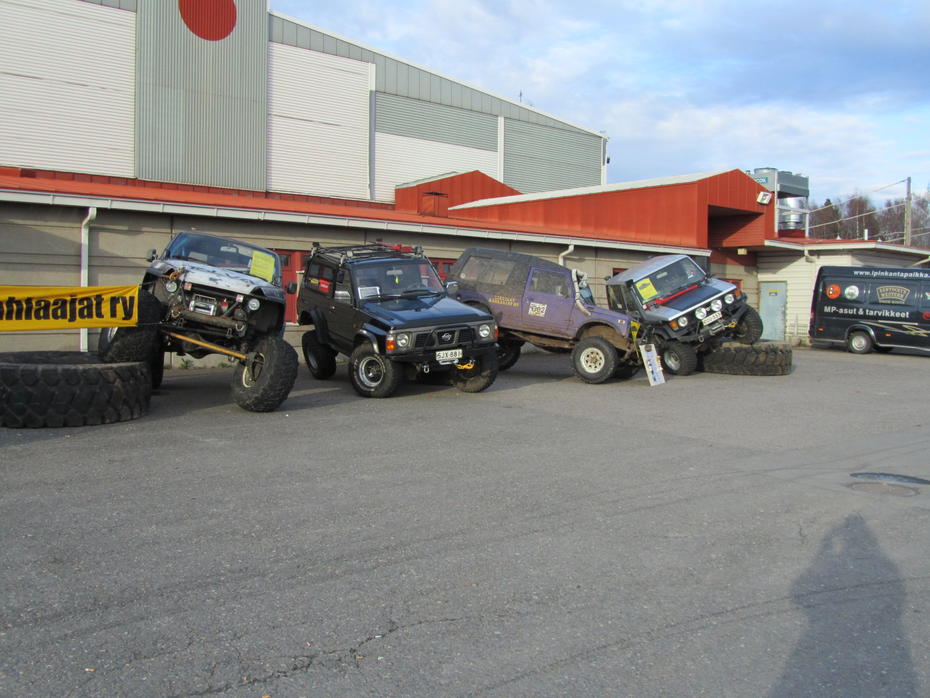 Kiitos tapahtuman sponsoreille Offroadtarvike ja Cross4wd sekä järjestäjille, maanomistajille, kilpakumppaneille ym.. Osanottajia oli harmittavan vähän mutta siinä mielessä mukavasti että melkein kaikilla oli mahdollisuus päästä palkinnoille. Isoimmat kiitokset vaimolle joka jatkoi suzukin hienoa kisahistoriaa . Hän ajoi ekaa kertaa tällaisessa suunnistus tapahtumassa ja keräs hienosti pisteitä. (Jospa sitä "talli aikaa" heruisi vastaisuudessa helpommin kun alkaa paremmin ymmärtämään tätä kokonaisuutta offroadista) Kisa meni meillä todella mukavasti muuten mutta aamulla heti ekalla alueella huomattiin että kemppilukko perästä oli tullut ihan normaali perä? Parikertaa käännettiin väärinpäin kääntynyt riipuke oikeinpäin. Niin ja se ainoa työvalo joka on takaovessa halusi halkaista lasinsa useaan osaan. Keltalan Kahlaajat Ry / Mustikka |