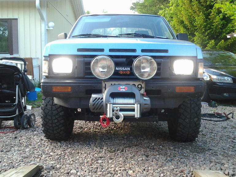 Tässä muutama kuva Libertystä. Liberystä ei päältä näe että saisi vinssin kiinni, Cherokeessa näkyy kiinnityspiste nelikulmio. Palkki puskurin sisällä, pahka palkin päällä ei ole tarpeen. Sama palkki altapäin. Libertyn puskurin sisältä on poistettu muovit ja tilalle on tehty palkki joka on runkopalkkejen päässä tukevasti kiinni. Palkkiin kiinnitetään tarvittaessa kiinnityspiste neljällä pultilla. Ja siihen irtovinssipeti vinsseineen tappi ja sokka kiinnityksellä. Sähköt on piilossa puskurin sisällä ja liitetään ison trukkiliittimen kautta. Kuvassa Liberty Mäntsälän Safarin vetämisen jäljiltä, useamman kerran tarvitsin vinssiä. Huomaamaton , mutta toimiva. Tässä vielä sama vinssi ja peti ennen muokkausta Cherokeessa. Vinssi oli liian matalalla kun Mäntsälän safarilla heti ensi töyräässä meni rullakita solmuun ja ajatus pedin muokkaamiselle sai kipinän ja heti tuli samalla ajankohtaiseksi liukukidan hankintakin. Sama vinssi ja peti JEgoNEERissä. Kun vaijjeri on liian tikkuinen niin vaihdan naruun, se kun on kevyempää nostella ja mukvampaa kädessä. Hyvää tässä on se että voi käyttää samaa vinssiä eri autoissa ja vinssi säilytetään lämpmässä ja kuivassa talissa kun sitä ei tarvita. Huonona puolena voi pitää sitä että vinssi heiluu ja kolisee vaan niihän se kokoko autokin maastossa. t. Ismo Ämmä