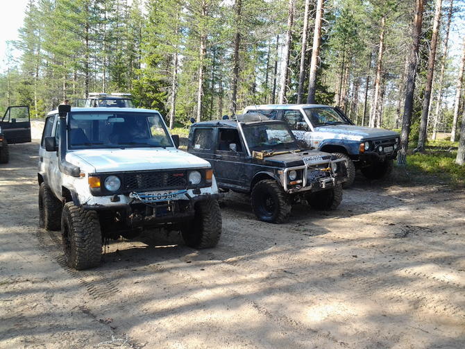 Pärjää mainiosti. Ryhmiä tehdään lähinnä autojen mukaan niin että saadaan kaikille mukavasti haastetta ja saataisiin pidettyä autotkin suunnilleen ehjänä. Ajo reittien suhteen meillä on mainiosti valinnan varaa, hiekka harjuista lettosoihin.