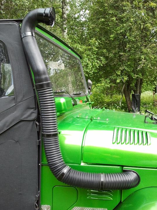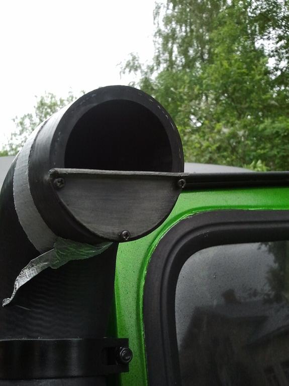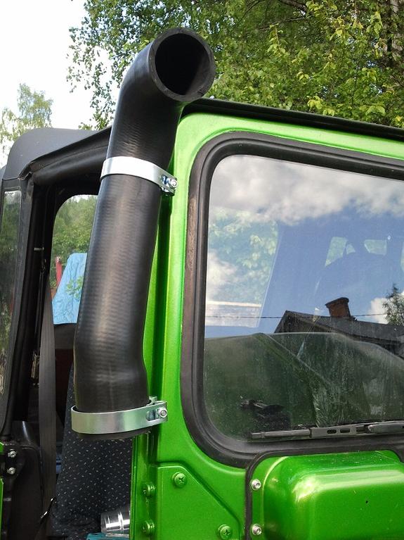 Kiitoksia jälleen kerran kommenteista! Huomasin jo snorkkelin rakennusvaiheessa, että vedestä saattaa tulla ongelma. Auto kun seisoi pihassa joitain päiviä ilman tuota "hattua", niin jotenkin putkeen oli heti päässyt vettä. Siinä taisi olla kyllä todella kovia sadekuuroja, mitä tänä kesänä on riittänyt.. Myös kaikki liitokset kannattaa tiivistää silikonilla tms. massalla. Hieno Jeeppi sinulla offroadjouni!