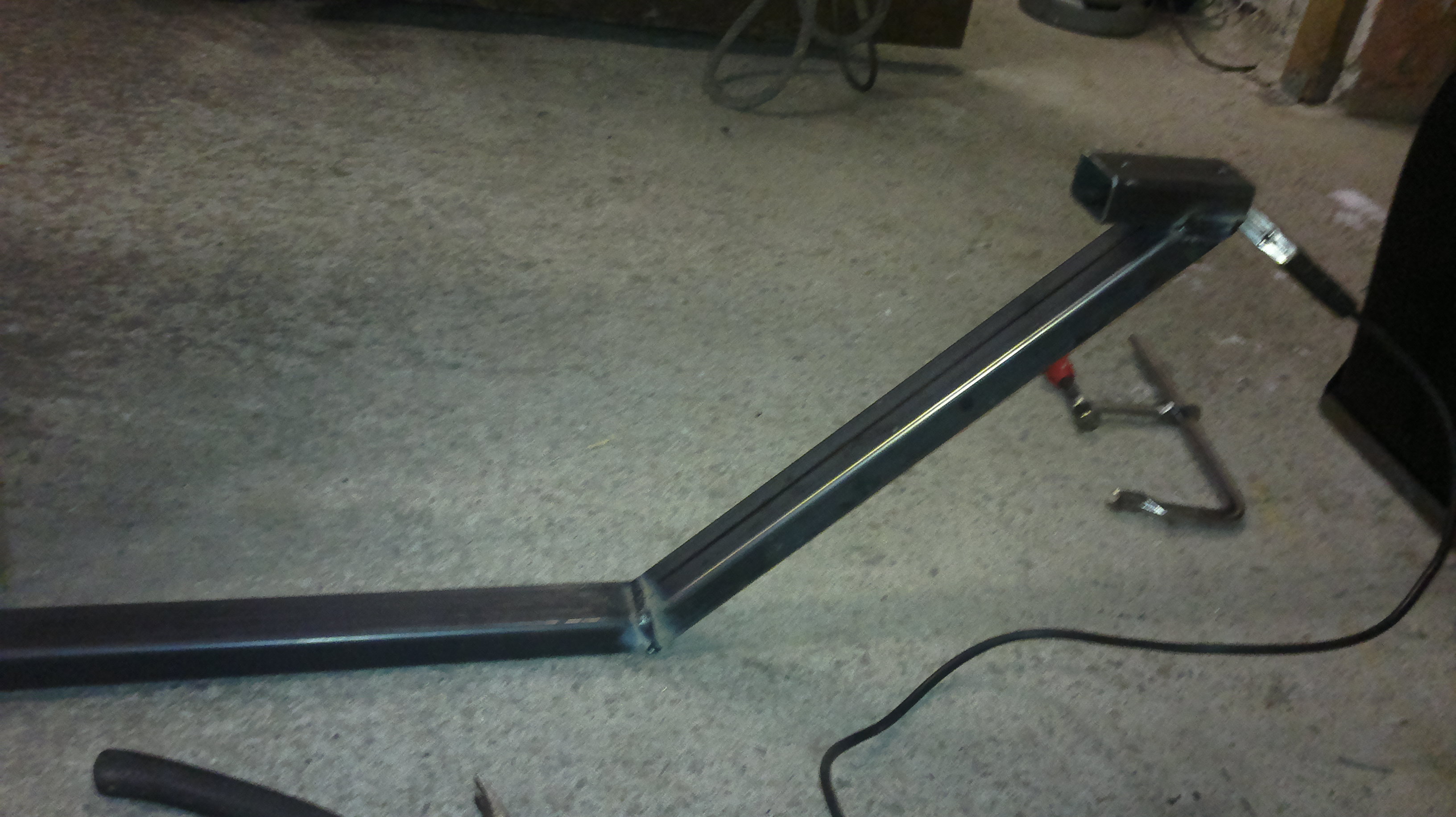 Nyt on päästy vauhtiin auran teossa, painoa tuolle tuntuu tulevan ihan mukavasti. Tuli tehtyä tuo aisa ihan putkipalkista. Tuo kulma kyllä on melko jyrkkä, saattaa tuo aura löytyä patrolin alta