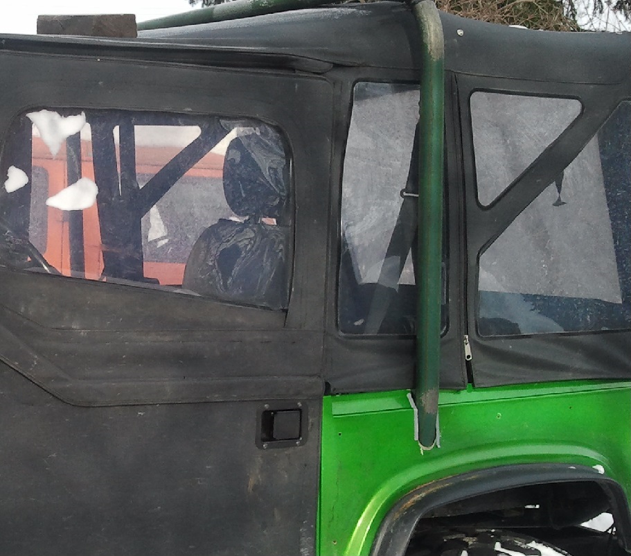 Seuraava projekti oli muhinut päässä jo parikin vuotta, eli tarkoituksena oli rakentaa ulkopuoliset turvakaaret kangaskaton päälle. Bj tarjoaa hieman haastavat mittasuhteet sivulta katsottuna tällaiselle ratkaisulle. Lähinnä etupenkin sijainti takalokariin on ongelmallinen. Pääkaaren lähteminen takalokarin etupuolelta alahelmasta suzukityyliin ei onnistu, paitsi jos kaari tulisi todella reilusti kallelleen taaksepäin. Tämä auto ei ole mikään trial luokan kilpa-auto, jossa täytyisi olla pilkulleen AKK:n liite-J:n mukaiset kaaret, mutta halusin kuitenkin, että pääkaari sentään on kokonaan etupenkkien takapuolella. Päädyin ratkaisuun, jossa pääkaari lähtee auton sisäpuolelta lokarin päältä ja tulee pienellä taivutuksella kyljestä ulos.