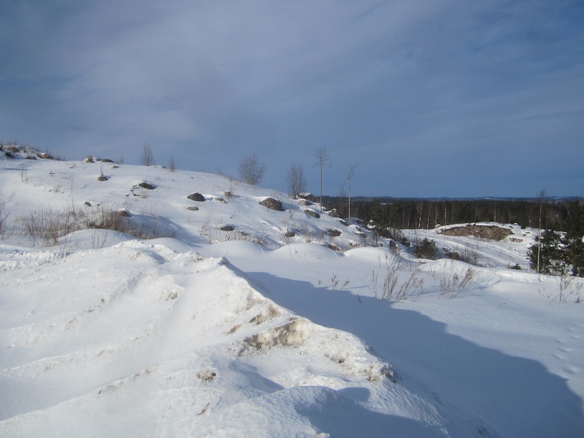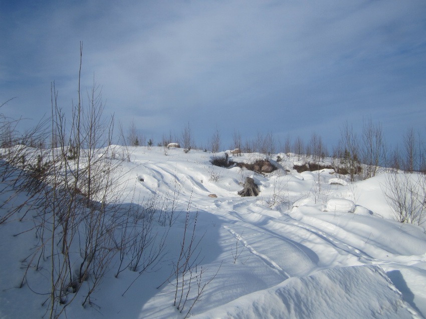 Ihan umpiseen hankeen ei ehkä kannata suoriltaan lähtee tuolla rengaskoolla työntään, meinaan vaikuttais toisin paikoin olevan lunta vielä melko runsaasti. Mutta valmiita uria syntyy päivän mittaan ja on siellä sellaisia jo ennestäänkin. |