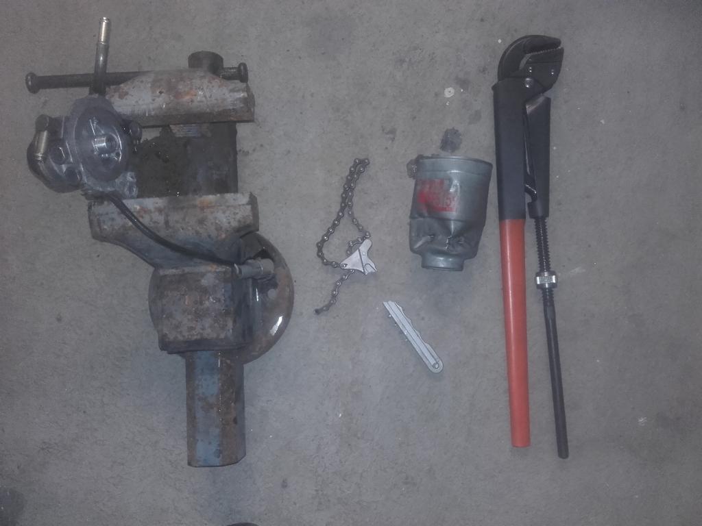 Mä yritin viime syksynä vaihtaa HZJ80 pa-suodatinta, käsin kiristetty viimeksi ja lopputulos oli kuvassa näkyvä. Suodatinavaimen kahva poikki, meisseli kuori tilaa ittelleen, putkitongeilla suodatin neliskanttiseksi ja vääntöä, niin aukesi.