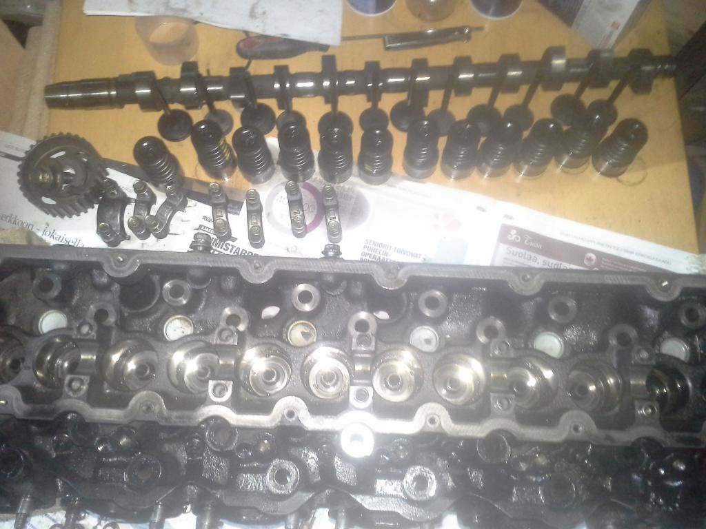 Yllättävän helposti lähti kun tahjosin kemppiläisellä isovirtaa niin , että samalla klunssi kasvoi kannen pinnan tasalle ja siihen hitsasin kiilaksi veistellyn pultin kiinni. Seuraavaksi oli ajatus venttiilit putsaa kliinerillä ja paineilmalla irroittamatta niitä, mutta tuli mieleen, että olisko venttiilien ohjureille aika tehdä jotain.. Manuaalin mukaan siellä ei mitään kumia taida olla, vaan ihan holkit joista venttiili tulee läpi. Onkos joku noita vaihtanut ja löytyykö muualta, kuin timanttitiskiltä? Tuo on auton oma kansi, eli reilu 600 tonnia sillä on kai jo rullattu..