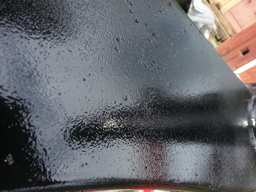 Ei ollut satanut samalla paikkakunnalla missä runko oli joten joten muutama kerros pintamaalia päälle. Jäi aika karkeaksi pinta puhalluksen jäljeen mutta jospa se kelpais.