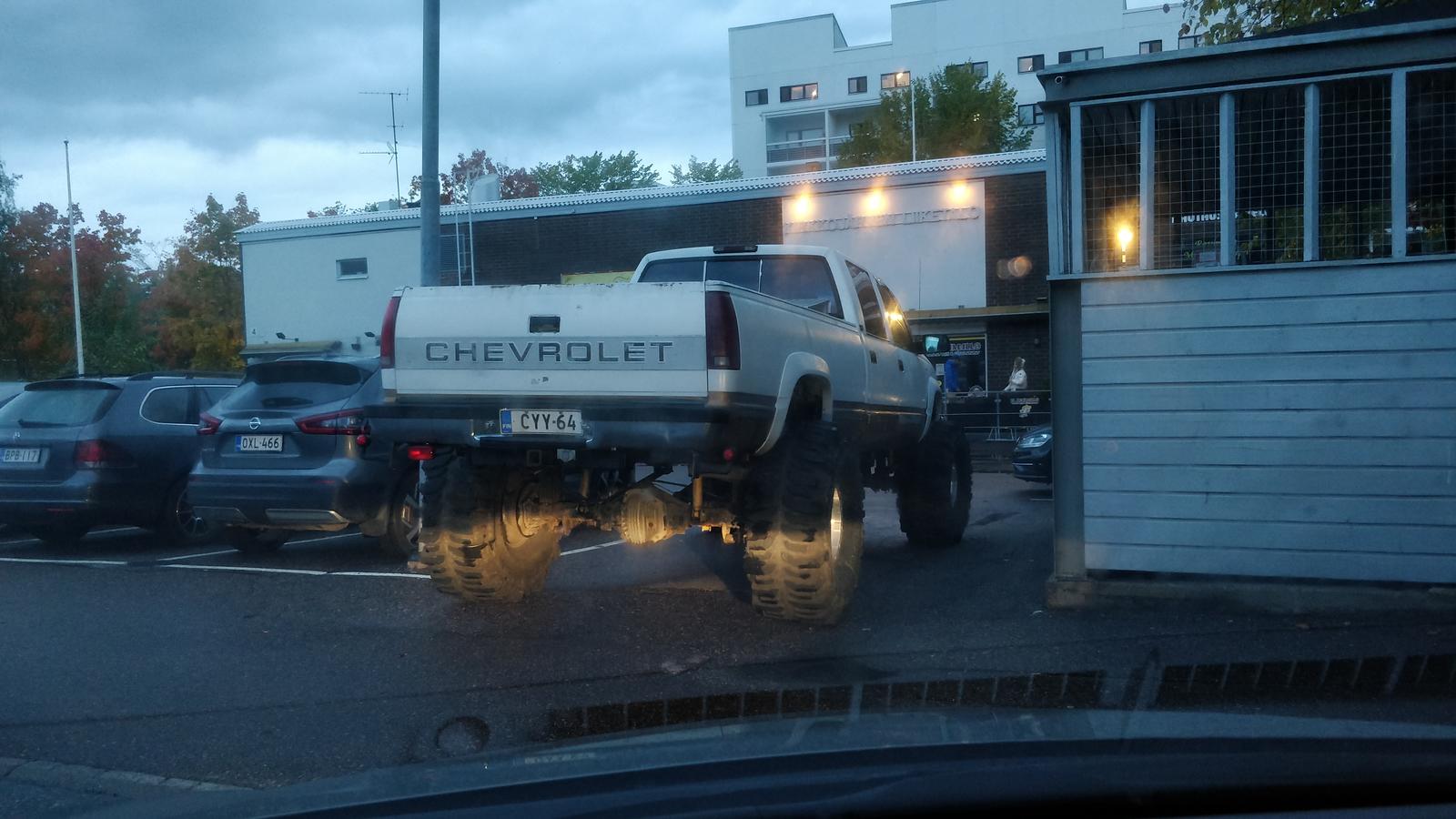 Salon Piihovin ABCn risteyksessä moikkailin aamulla maastovärisessä pickupissa olevia herroja. Peräkärryssä komea vihreä avomallinen kulkuväline.