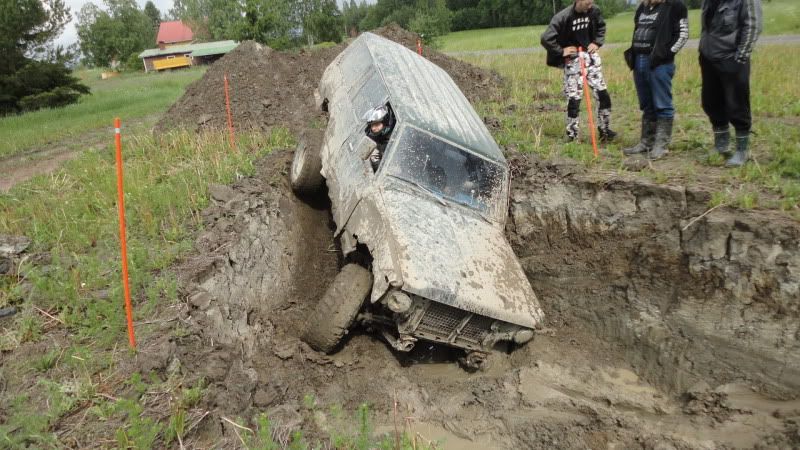 Ne surulliset rengaskujat saivat purkutuomion. Lopullinen niitti oli tämä. Mutta tässä videossa näkee myös sen että auto ja renkaat jotka toimivat hyvin spoorissa voivat olla trial osuudella TODELLA surkeat! Tonnikeijukainen kovilla traktorinrenkailla.... että näin. Mutta katsokaa ihan huonon viihteen nimissä. ![]() ![]() Kasari uusilla renkaillaan pikkupyöräisten rengaskujalla. Helpon näköistä! Tosin toisella kertaa ei luonannut. Kuormaajalla noukittiin pois. |