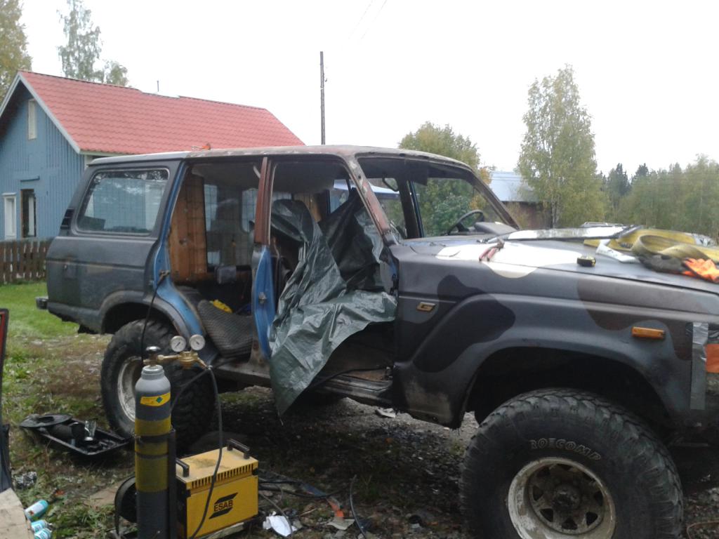 Isontaa pyöräaukot jne.. pähkäilly kuumeisesti että hakisko toisen kopan, mutta taitaa jäädä kun tuo raha on tärkeä juttu asiassa. Eteen tarttis laittaa lisälehtiä jousiin ja takaa kääntää riiput. Perä lyhentää, poistaa tankki jne. Hitsailla vahvikkeita ja rakentaa panssari jakiksen alle+muuta pientä.