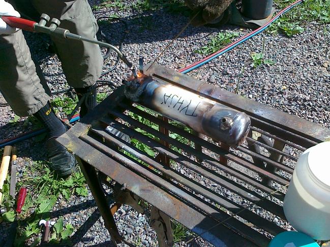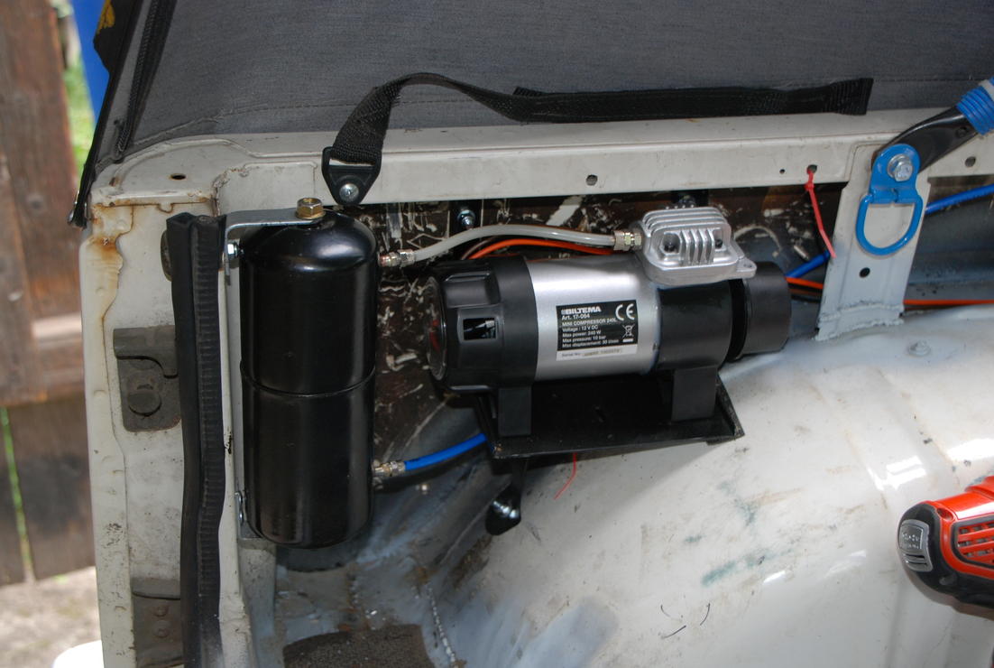 Kameraahan ei tietenkään tullut mukaan ja kännykälläkin tuli otettua vain muutama kuva. ![]() Bilteman pensapumppu 52-203 sai kiinnikkeen pellistä ja väliin kumimattoa värinöitä vaimentamaan. Kuva kiinnikkeestä myöhemmin. Pumppu tulee alkuperäisen ilmanputsarinkotelon alakiinnikkeen tilalle lokariin. Toissakesäinen kuva paikkaa havainnollistamaan. Bensan välisäiliö (tilavuus noin 1 litra) tulee kertakäyttöisestä hitsauskaasupullosta. Letkuyhteitä/nippoja ei ollut varastossa, niin säätäjä-setä teki swiftin polttoaineputkista letkuyhteet. Ruiskupumppu imee paineilmapikaliittimestä ainetta ![]() Kiinnitys syylarin viereen. Swiftin imusarjasta ja kannesta kaavin tiivistepinnoilta syöpymiä ja paskaa pois sekä suolestin swiftin virranjakajan, jotta sen tyhjän kuoren voi laittaa paikalleen pitämään nokka-akselia paikallaan. Siihen Jakajan kuoren päälle leikkasin vain simppelin lapun pitämään oravat pois pyörivien osien tieltä Hyvin valmisteltu on puoliksi tehty. TJ0+2 alkaa ruutan asennus ja samalla vaihtuu swiftin kansi, jossa on ehjä nokka-akseli Vielä pitäis hommata kolmea-neljää halkasijaa pensaletkua ja sähköinen siirtopumppu.Kysymyspalsta: Riittääkö sj413 alkuperäinen polttoaineen paluulinja(halk noin 5mm) ruiskun paluuputkeksi, vai pitäisikö tehdä niin, että käyttää alkuperäistä päälinjaa paluuputkena ja vetää uusi, vielä isompi päälinja? Siirtopumppu konehuoneeseen vai konttiin? Mihin avossa kannattaa laittaa ruiskupoxi? |