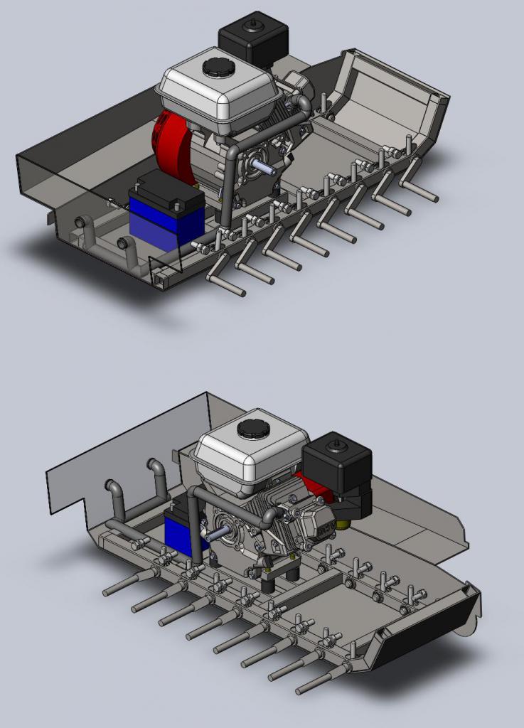 ![]() Junnuna kun tuli vielä harrasteltua ja rakenneltua kaikenlaisia rc-vehkeitä, olin myös aikeissa rakentaa 1:6 skaalasen Sturmtigerin, sattuneesta syystä koko vekotinta ei koskaan alotettu rakentaan vaan jäi suunnitteluasteelle, tai kerkesin mää tähän hommaan 6,5 heppasen paikallismoottorin joka oli tälläkin palstalla myytävänä vielä pari kuukautta sitten. Sturmin sinikopiot löyty netistä ja hyvin pitkältä niitten perusteella tämäkin suunniteltiin Solidworksilla. |