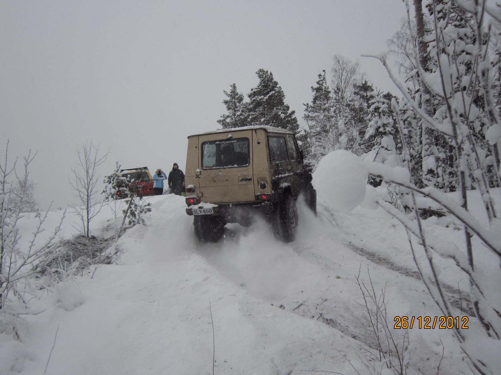 Joo oksennuksesta hajosi jarrut ja ohjausiskari. Onneks Elolla oli makkaraa ja karkkia niin pysyi innostus yllä. Kai meitä neljä autoa oli.