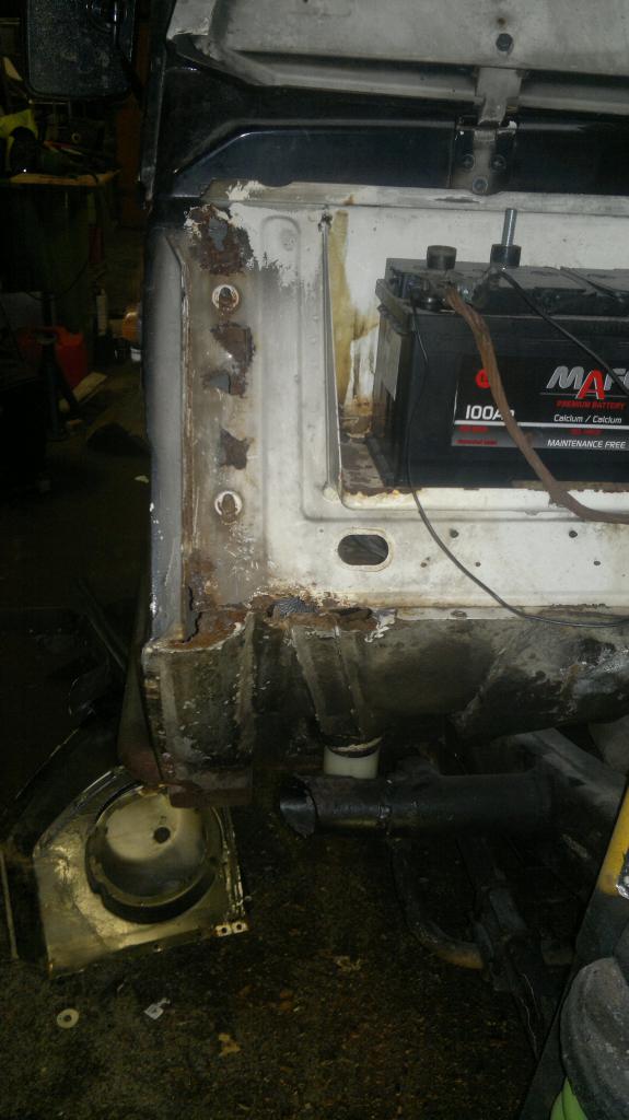 Jos et aio mitään museokatsastusta tehdä niin vedä nuo lahot takakulmat reilusti rälläkällä kokonaan pois. Eli takaoven alakulmista 45-asteen kulmassa vaan kohti pyöräkaaria. Ja sit ledilamput sinne ylemmäksi niin pysyy ehyenä.