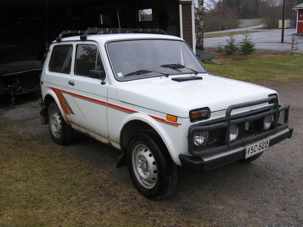 Lada Niva 1,6 -88 1200€Myyty Tuollainen herkku tuli nyt myytäväksi.Ajettu 92tkm, yksi omistaja -89 vuodesta lähtien, leimaa 2/16, kahdet renkaat, pieniä ruostepilkkuja alaosissa, pohja näytti erittäin hyvältä, itse asiassa täysin ruosteettomalta. Tuulilasi apukuskin puolelta rikki. Kärjetön sytytys, kone käy kaikilla eikä ylimääräisiä kuulu, voimansiirron äänimaailmasta en osaa sanoa mikä on ominaisuus, ja mikä ei ![]() Tämähän on ollut kamala laite uutenakin, joten ostaja varmasti tietää mitä hakee, koska kukaan täysijärkinenhän tällaista ei enää osta (sanoo mies joka ajaa 160 korisella pätkällä)Joten ei muuta kuin terve tuloa kaupoille. Lähdetään 1200,- liikkeelle, ja mitä nettiautoa vilkaisin niin veikkaampa että jostakin palstalaisesta tulee melko pian onnellinen suurvaltatuotteen omistaja