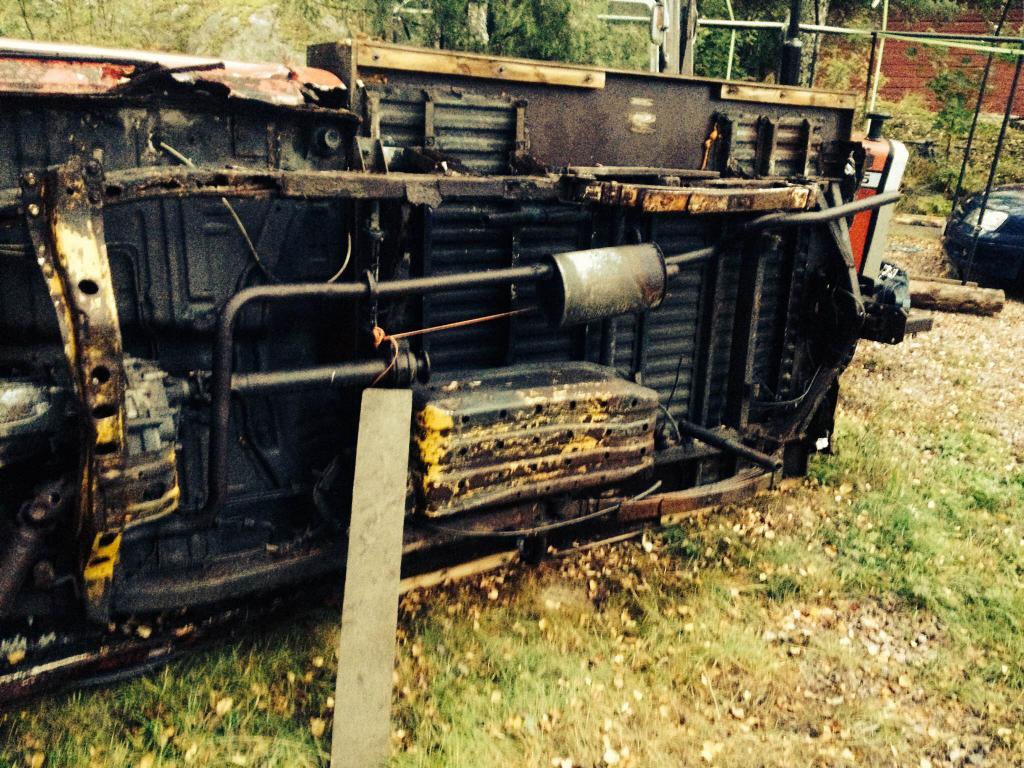 Simpukkaa ei ole, lava purettu jo, vaihdekepin pussi löytyy, katson kunnon huomenna... ![]() Kardaani omaa hieman klappia jo... Raadossa on siis vielä ainakin Kuskin penkki ( vakiopaikasta hieman alkanut murtumaan ) , kojetaulu, euikkuna, takaikkuna, sivulasit, konepelti, vaihteisto jakolootineen, tankki, jne, jne...