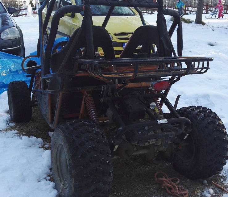 Kroskart 2 istuttava. 175cc, takaveto, 399€/tarjousMyyty Myyty pikavauhdilla (29.1.2017)Ruma mutta hauska. Kuvien mukainen kiinan ihme myydään viallisena. Nastakumit, hyvin pintaa ja pitää ilmat. Sisäkumit mukaan. Rengaskoot etu: 19X7.00-8 taka: 22X11.00-10 Vuoden vanha akku. (Exide) Myös aikuinen mahtuu ajamaan, mutta tehoa riittää lähinnä kevyemmälle kuskille. Ongelmat: Lakkasi starttaamasta. Virtalukko on mitattu ja vaikuttaisi ehjältä. Toimi vielä jokin aika sitten, mutta ei jostain syystä sano avaimesta mitään. Lisäksi pakin vaijeri on miten kuten, eli pakki ei toimi. Ryyppy ollut aikanaan sähköllä, mutta sen puute ei ole haitannut ajamista. On lähtenyt käyntiin myös pakkasella. Ei jaksa korjata, koska teinejä ei ajaminen kiinnosta. Voisin ehkä vaihtaakin johonkin järkevään. Kampe on Hartolassa. Voidaan tarvittaessa kuskata jonnekin ympyrällä Lahti-Hartola-Asikkala. En seuraa palstaa aktiivisesti, joten laita mailia tai ota yhteyttä puhelimeen. antti.kumpulainen(ät)gmail.com 040 820 4174 Myyty Viimeksi muokannut Anders_Hågblåd : 30.01.2017 11:33 |