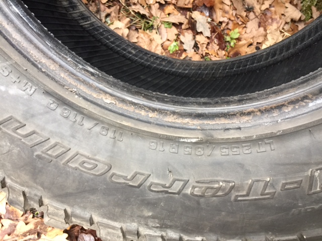 BFG Mud Terrain 255/85/16Myydään MYYTY!Vanhat, paisto leima 2005 mutiaiset 4kpl. Pintaa n.10mm, oliko yhdessä koiranpaska paikka. Tasasesti kuluneet. Saisko niistä 40€ ja sijaitsee Vantaalla? Juha 040 543 8733 (Miksiköhän ohjelma kääntää kuvat nurinpäin?) Myydään