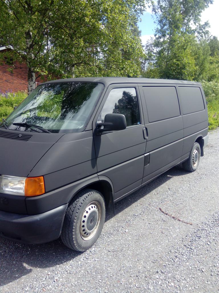 Transporter T4 SYNCROEli tuollainen pitkämallinen portteri lähti jatkojalostukseen. Väriksi tuli tietysti mattamusta( on muuten supermattamusta). Puskurit, kahvat ja vanteet tulee kiiltävän mustaksi. Autoa korotetaan lievästi ja asennetaan maastorenkaat. Vinssit tulee eteen ja tavaratilan etuseinään jotta voi vinssata asioita kyytiin ja samalla toimii vinssinä taaksepäin. Lumiaura on myös suunnitteilla.