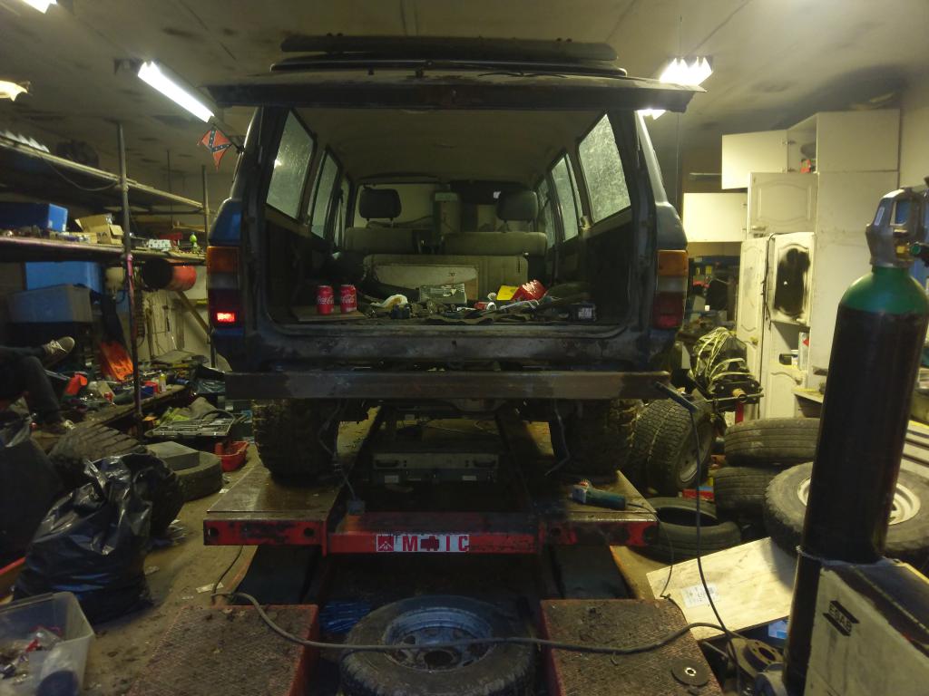 Auto saatiin renkailleen ja kardaaneihin muunnos palikat väliin nii sai liikuteltua