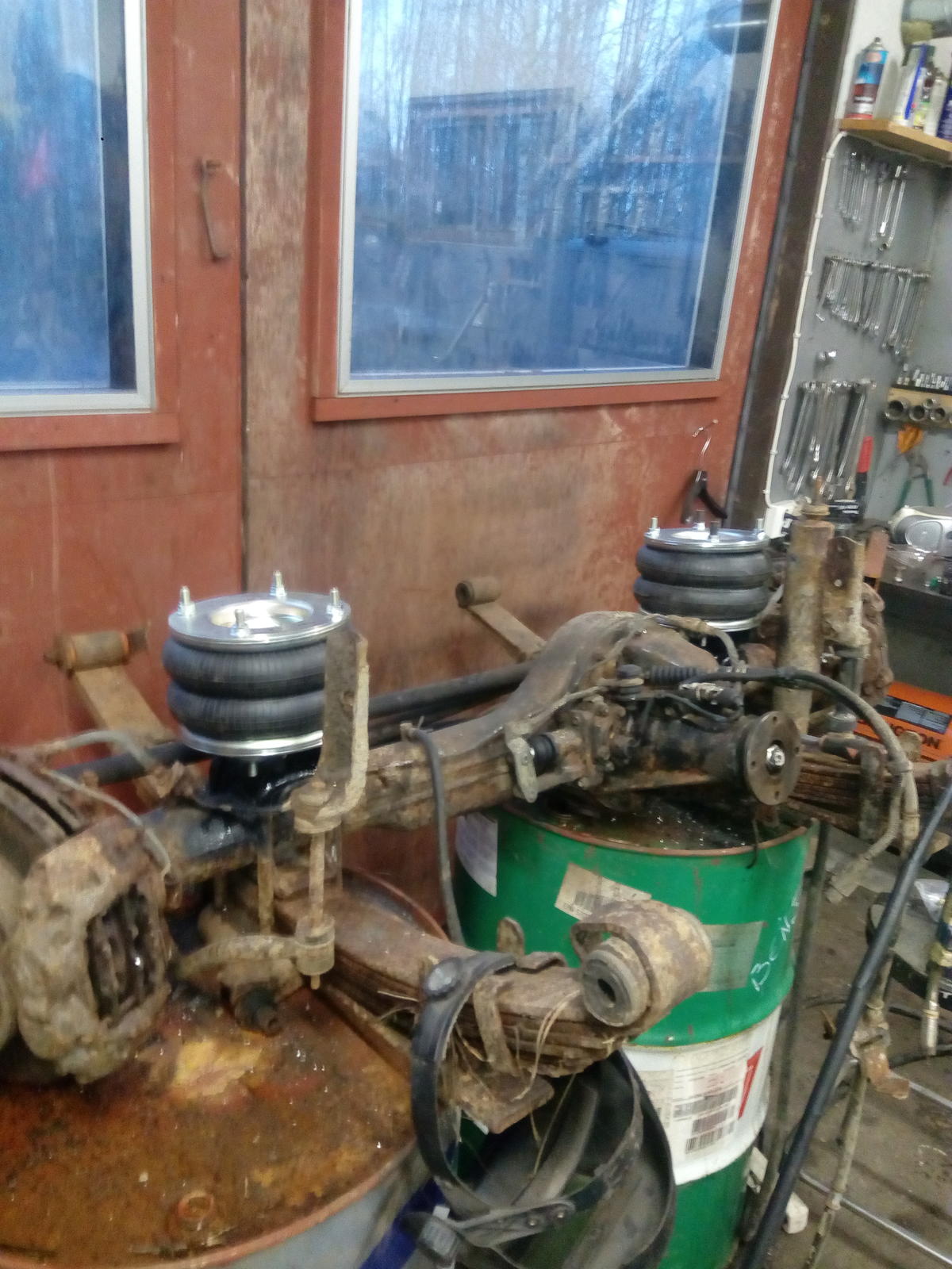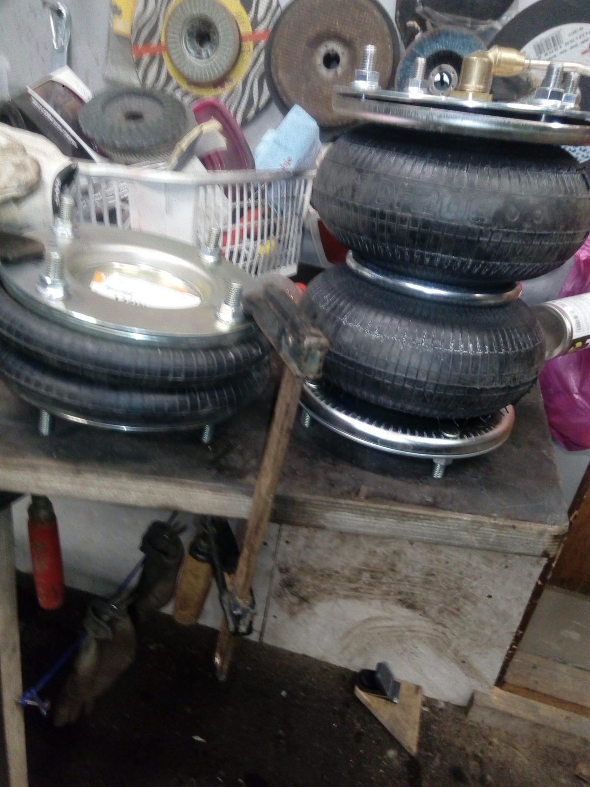 Jousista täytyy ottaa pari lehteä pois niin asettuu normaali ajoasentoon. Noilla jousilla nousee 10 senttiä ja vakioiskarit menee päätyyn asti. Auraidea: mekaaninen aura joka nousee ylös kun etupää nostetaan ylös ja takapää lasketaan alas ja taas päinvastoin. Voihan ilmajousiin ajaa myös alipaineen niin menee jouset tosi alas. Ulosottoon suunnitteilla kompura ja hydraulipumppu.