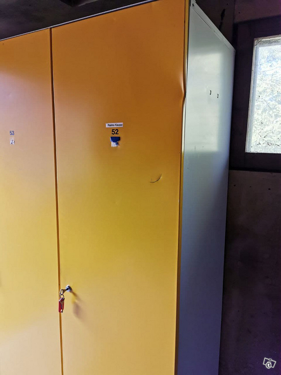 Peltiset pukukaapit *OULU*Myyty Myynnissä myös torissa, nouto Oulu/Oulunsalo https://www.tori.fi/pohjois-pohjanma...75038.htm?ma=12kpl GWS peltisiä pukukaappeja leveillä ovilla. Toisessa on yhdessä ovessa pientä ruttua, muuten ovat siistissä kunnossa. Jokaiseen oveen löytyy avain sekä kuvan mukainen musta tilanjakaja. Leveys 134cm, korkeus 188cm, syvyys 51cm. Lisäksi löytyy yksi kaapin eteen sopiva penkki. Ruttuinen kaappi 50e Suorempi kaappi 60e Penkki 10e Myyty Viimeksi muokannut Catrik : 10.08.2021 08:03 |
