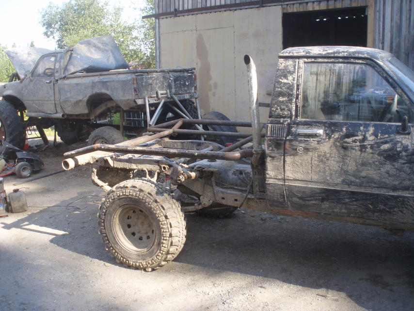 Tulipa sit Helmi ostettua.Aikani pyörin ilman autoo näissä offi porukoissa, ni rupes autokuume nousemaan. Sit tuli ostettua vuosmallia -82 oleva Hilux. Yllätyksekseni autossa oli kyllä "voiman" määrä.. voi hirveetä. Mut tästä lähetään pikkuhiljaa autoo rakentelemmaan ajan/rahan salliessa. Tarkotuksena ois pitää matalabudjettisena projektina tämä. Elikkä rakennellaa saatavilla olevista materiaaleista .Muutaman kerran on käyty ajamassa, eikä ole mitään suuren suuria ongelmia vastaan tullu. Pittää sannoo et on kyl tosi mukavaa ollu vaik on vasta ihan parikertaa käyty ajamassa. Auto on ollu yllätys mitenkä on ihan vakionakin menny mitä kummallisimmista paikoista. Autokin on kestäny aika hyvin, ihan perus osia menny: syyläriä, pakoputkee, kardaania ja ompa tuo autokin kerran päässyt jo katkiammaan.. Autossa oli sit nii hyvä kuntonen lava, et tuumitiin et ei kannata sitä metässä pilata, joten myynnissä on lava tosta.. ja pari otosta..