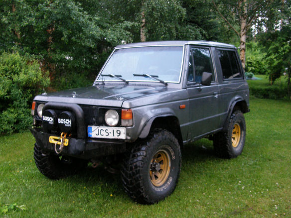 Pätkäpajero myynnissäMyydään Mitsubishi Pajero 2,5 TD IC -87(lyhyt):- Jälkiasennettu välijäähdytin - Mittarilukema 310 000 - SOA- korotus taka-akselilla (rekisteriotteessa) - Takana ARB paineilmalukko+ kompressori - Toyotan mekaaninen vinssi - Katsastettu 22.1.2010 - Kahdet renkaat - Kaikki toimii - Ehjä runko (Lapin auto) - Korissa lommoja (ei haittaa käyttöä) - Tästä loistava offroadaihio hintapyyntö 4000€ (ilman lukkoa 2800€) kysy lisää 040 5229351 Janne Myydään |
