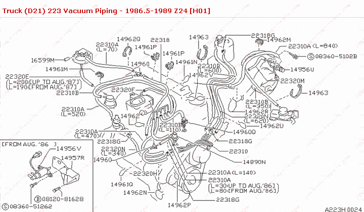 "Heres a diagram of the Z24i. The metal line closest to the motor goes to the evap canister and to vacuum from the motor (on the connector setup that should be attached to the air cleaner) The middle (largest of the 3) goes to the passenger side of the throttle body to a piece bolted into the side with two vacuum connections on it (the one on the backside goes to the AB valve). It also connects to the evap canister. The metal line closest to the radiator goes to the AIV system and to a vacuum connector on the motor. I can't really remember how all the AIV system is set up I removed it since it was rusted out anyhow, along with anything else not necessary. I would also recommend connecting the fuel pressure regulator directly to the intake Someone on here recommended it to me and it made quite a difference in how the truck ran. It's normally connected to the TB and doesn't get very good vacuum there. Hope this helps."