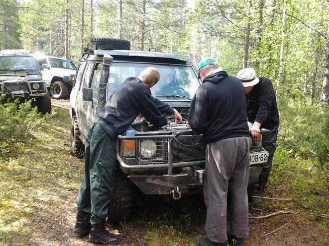 ![]() Vai varmaan kaikki kuiteski muistaa mitä siellä siellä tapahtui ![]() Elikkä hommahan alkoi siitä kun perjantai aamuna alettiin keräämään porukkaa kasaan joka koostui Lamaas offroad ry:n porukasta. Matkanteko aloitettiin aamulla hyvissä ajoin ja ei aikaakaan kun Jeeppi kuski huuteli laa puhelimeen että letka seis,tässä on jotain hämmminkiä... Ei muutakuin kuin SEO:n pihaan parkkiin ja ihmettelemään,No koppahan siellä oli ratkennu kuskin renkaan takaa,Päätettiin että jatketaan matkaa ja korjataan perillä, Kolmiloukkoon kun saavuttiin ni jeeppi mies alkoi heti huudattamaan maastohitsiä ja sillä välin toiset kasasivat Bilteman huvikatoksen ilman ohjeita ja muka onnistuttiin vielä![]() Kello alkoi jo olemaan sen verran että Jussi tuumasi että miten olis pieni tutkimusmatka,luvassa olisi kivikkoa ja kalliota,No tuuumasta toimeen ja tötteröt tulille ja ei muuta kuin tien päälle ja off the road.. Kivikko löytyi ja siellä kerettiin perjantai iltana temuta,muutama tunti myös istuttiin makkaran paistossa kun osa porukasta oli merkkaamassa reittiä,Ja ei aikaakaan ku metsän siimeksestä alkoi kuulua julman Toyota merkkisen maasto-auton murinaa ja sitä seurasi mersu,siis lisää safarille ilmoittautuneita oli tulossa..Perässä seurasi lisää offareita ja myöhemmin letkaan liittyi range mies eli Paavo.Laa puhelimet ja pmr radiot huusivat pitkin iltaa erillaisia ajo-ohjeita,tuonne tänne ei ku suoraan ,missä ja kenellä oli se hi-lifti ![]() ![]() Matka jatkui uuden reitin loppuun ja siitä suuntasimme leiriin takaisin kolmiloukkoon. Lauantai aamuna Kolmiloukkoon saapui lisää offareita..Seuraavaksi oli ryhmien jako,Pikku pyöräisten ryhmä ja iso pyöräiset jaettiin 2 ryhmään. Lähtö oli kello 10:00 aamulla ja siitä eteenpäin..pikku pyöräiset kiertelivät hiekkamäkiä ja pikku pankku uraa,seilläkin sattui ja tapahtui mitä radio puhelimen kautta kuuli..Suzuki tulee perä eellä alas mäkeä,pois alta! ja Pajerossa oli kuulemma muta poorissa jako hypänny 3 pykälää ![]() Isopyöräisten toisessa jaoksessa alkoi safarointi sähkölinjojen alusilla,oli märkää,kangasta ja suhteellisen jyrkkiä nousuja ja laskuja,,helpolla ei sielläkään päästy,Bensa pumpua vaihdettiin Suzukiin ja suodattimia..vinssejäkin jouduttiin käyttämään ku samassa lutakossa oli välillä 3 autoa kiinni yhtä aikaa...jossain vaiheessa törmäsimme isopyöräisten toiseen jaokseen,kuulumisten vaihtoa ja reitin kyselyä... Niin ja se tärkein meinasi unohtua,tottakai safarilla makkaraakin paistettiin,,allekirjoittanut ei syö sitä ainakaan seuraavaan viikkoon... ![]() Ja niin päivä vierähti uusia reittejä ajellessa ja oli aika pistäytyä leiriin haukkaamaan pientä ilta purtavaa..Ja suunnitelmissa oli että jos mentäis porukalla ajamaan se kuuluisa vanha original sähkölinjan alus..No ensimmäiset 300 metriä meni ihan maukkaasti kunnnes Jeepin vinssi päätti sanoa poks,,Ei muutakuin tuumasta toimeen ja Jeepistä vinssiä irti,,Hetken aikaa purku töitä tehdessä tuli mieleen että meillä on leirissä irto vinssi mutta kuka sitä hakemaan,Samaan aikaan alkoi taas kuulua Toyotan diesel moottorin hurja pauhu linjalta,Ei muutakuin juosten vastaan ja tilanteen selvitys että nyt kävi näin ja siellä olis semmonen,Viittittekö käydä hakemassa vinssin leiristä? Homma ok ja Toyota ympäri,Hetken päästä oli toyota ja vara vinssi linjalla,,Reilu 2 tuntia meni vinssin vaihdossa ja vanhan purussa,Jarru oli sanonu että poks ja thats it. Eliu kun jeepissä oli taas toimiva vinssi niin matka jatkui,Ei aikaakaan kun jeepistä nostettiin uudestaan konepelti pois,Remmi irti ja päreinä,pientä fixiä ja huomattiin että ei toimi,ohjuri pyörä sökö,,Ei taas auttanu muu kuin leiristä hakemaan varaosia,kiitos paavolle osien hausta ja sille toiselle Jeeppi miehelle vara hihnasta..Jeeppi saatiin kasaan ja kovaa ajoa, Kello alkoi olemaan jo aamun puolella kun saavuttiin leiriin,Hurjimmat kävi aamu saunassa ja grillais vielä..Unet jäi koko viikonloppuna muutamaan hassuun tuntiin,,vaan ei tuonne nukkumaan oltu mentykkään... Niiin koitti sunnuntai aamu ja osa porukasta oli jo luovuttanut mökit ja pakannu kamat autoihin ja lähteneet kotiin päin,,LJ mies voivotteli että beatloceista puuttuu pultteja....eikä markkamarketin pultit passaa kierteille....ja niin sekin oli lojahtanut paikallisen ABC aseman pihaan illan päälle vielä.. Ja sunnuntaina oli vain 1 auto joka oli lähtenyt ajamaan reiteille.. Tuolta löytyy kuvia http://lamaas.1g.fi/kuvat/Kes%E4kuun+keikaus+HCK+offia/ ja niitä latautuu sinne pikku hiljaa lisää..... jos jäi jotain kertomatta niin kertoilkaa lisää,Terveisin se rujoa vihreää Suzukia ajanut kaveri ![]() Meinas unohtua,Iso kiitos järjestäjälle ja ryhmänvetäjille, Ja tietysti kaikille mukana olleille...Toivottavasti pian taas uudestaan..