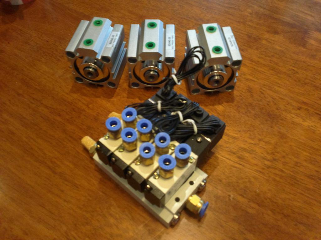 ![]() Postipoika oli saanu sylkyt ja solenoidit raahattua HongKongista asti tänne korpeen eli näistä pitäs rakennella noiden lukkojen ohjaus: Pitihän se heti vähän mallailla paikoilleen, tuohon 15mm raudasta laippa perän ja sylkyn väliin + suoja ettei kivet ja kannot murjo ja sylkyn männän kun liittää lukon haarukan akseliin -> pitäs pelata paineilmalla... Sitten vain ylimääräset reiät umpeen peltilaipoilla ja letkut paikoilleen ![]() |