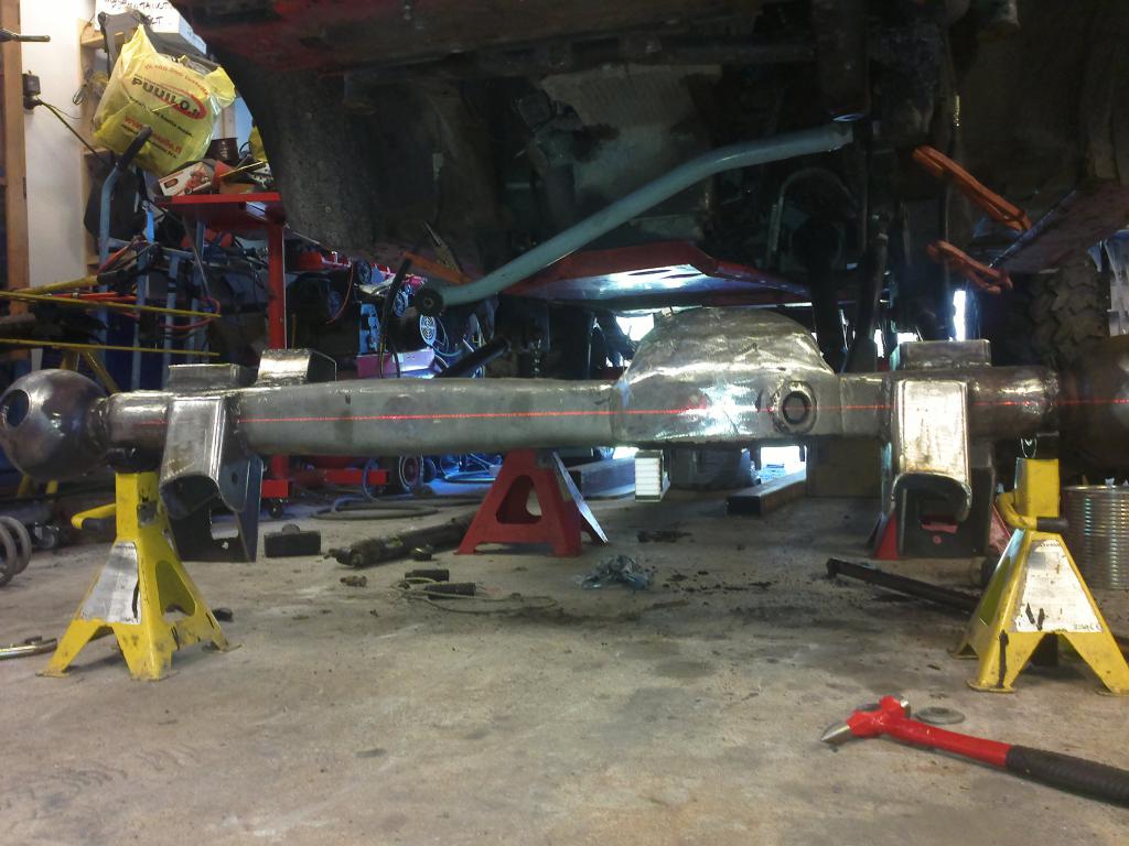 Pedit tulee nyt jousien suhteen akseliputken keskelle eikä etupuolelle kuten Jeepin akselissa on vakiona jotta tuo jousi tulee järkevämpään asentoon.