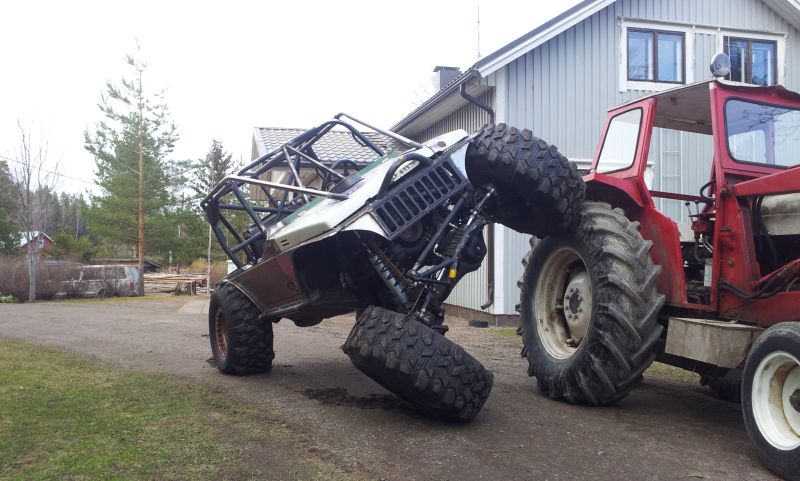 Ei hirveet joustot vaan hyvin noilla on pärjätty. Oikea takapyörä on juuri irronnut maasta eikä kuskin ovea saa nyt kiinni kun menin aukaisemaan. Ai niin olihan tosta Libertystäkin vähän sumuinen kuva kun Kulmassa joskus ajelin sillä, vaan ei kestä alusta maastoajoa, puslat repee ja pallonivelet väljenee. t. Ismo Ämmä