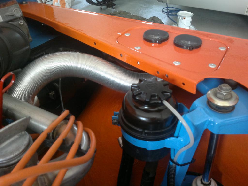 Lämmityslaitettahan tässä ei ole koskaan ollut, niinpä sellainen täytyi siihen tehdä. IKH:lta raktorin lisälämppäri, neljäasentoinen virtakytkin, ja raktorin suunnattavat suuttimet. Lisäksi sieltä täältä putkea letkua ym.ym. Osien asemointia ja toimeen. Itse lämppäri hantinajalkatilan yläpuolelle, siitä lämpöputket jalkatiloihin ja kojelautaan. Ilmanotto vasempaan lokariin (noihin pitäis vielä jotkin hatut kehittää, ettei satais sisään), ja kolmitiehana nesteenkierron säätöön. Hanan asensin tulipeltiin, sisältä näyttää hienolta vaan hieman oli ahdas paikka konehuoneen puolelta. Omasta mielestä hyvä tuli, mutta pakkaset näyttävät lopullisesti onko siitä mihinkään.
